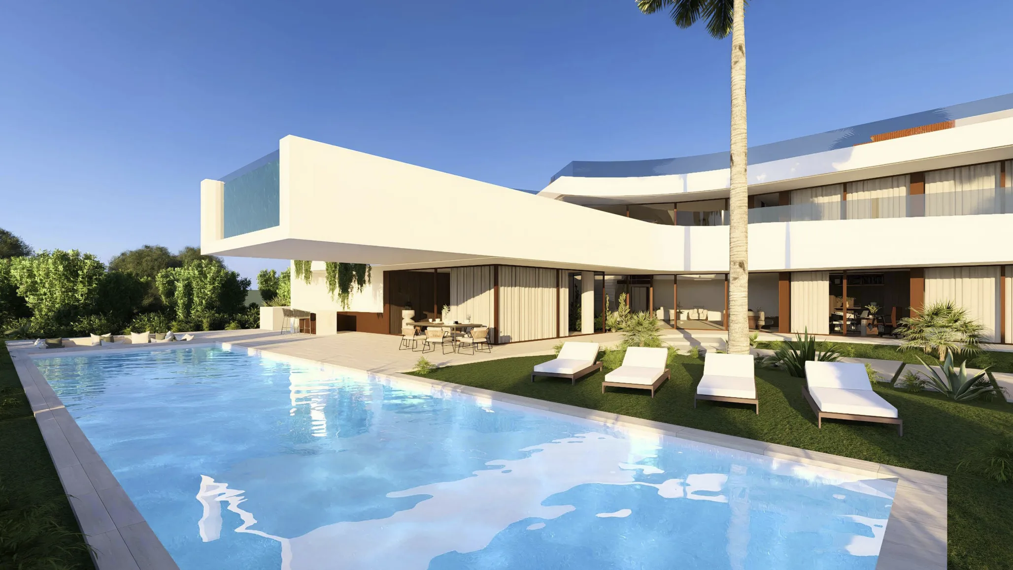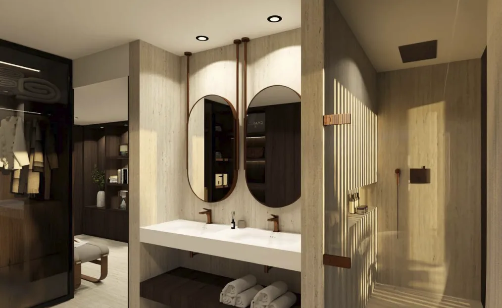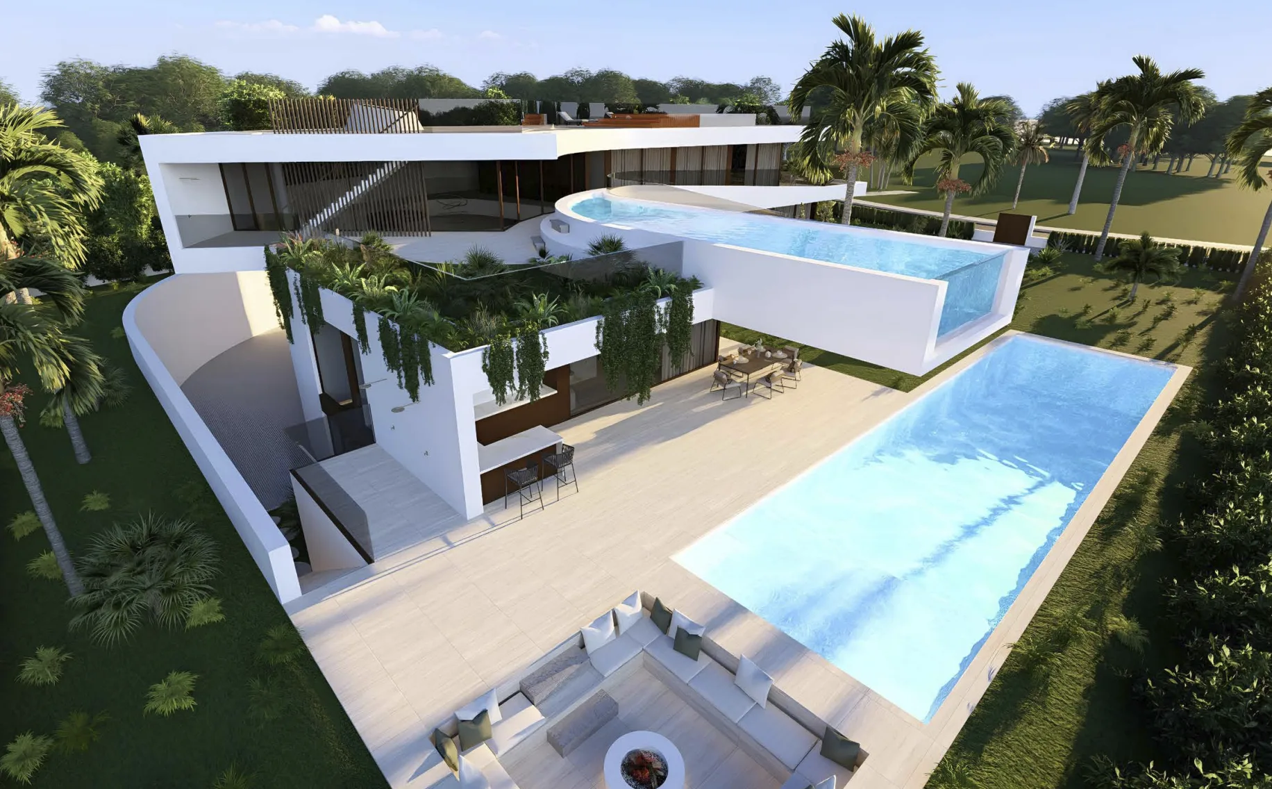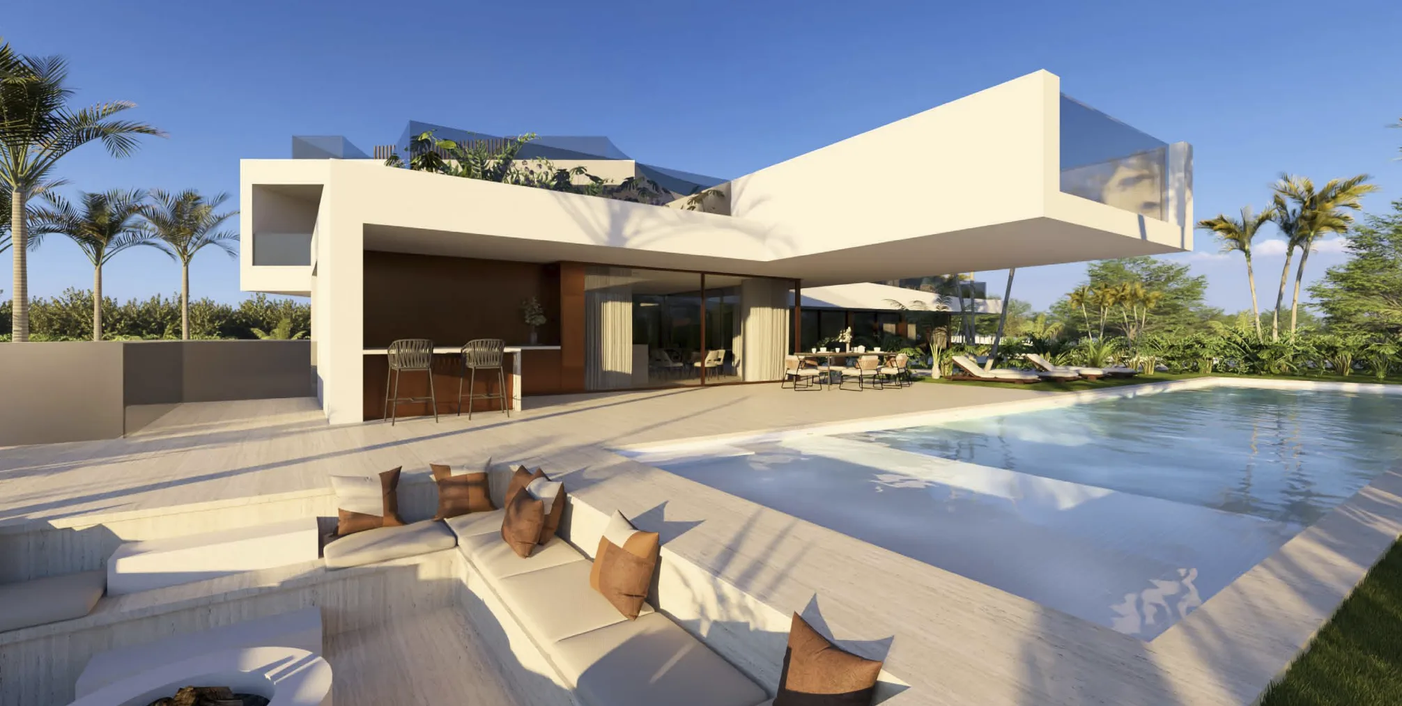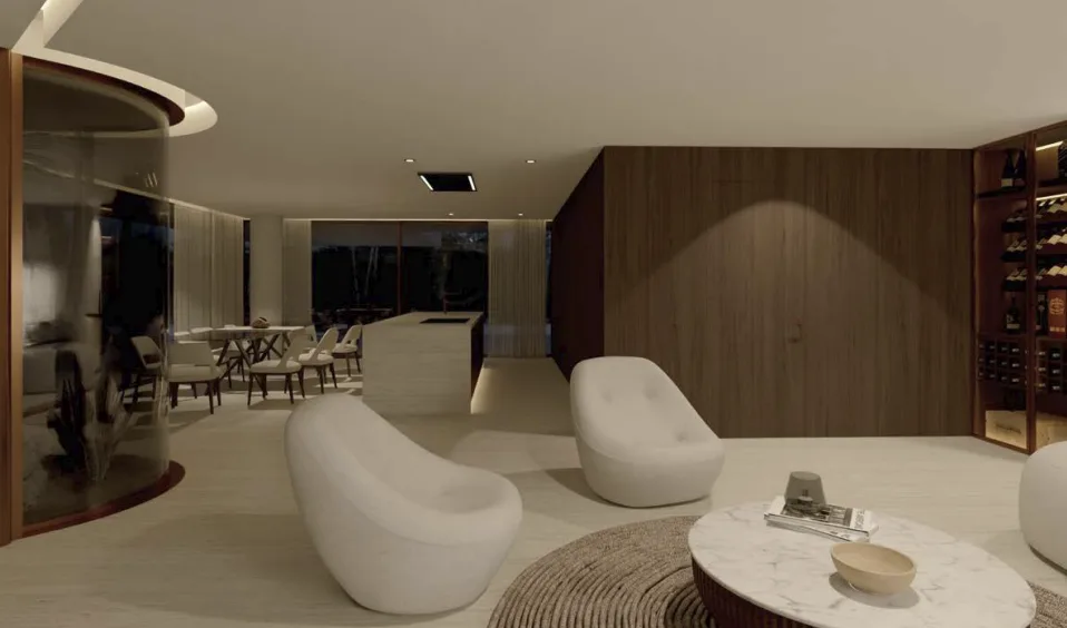 Com acabamentos de marcas de prestígio mundial (como Gessi, Sub-Zero & Wolf, e Schüco) , a villa oferece um estilo de vida focado no bem-estar, incluindo um spa interior completo, ginásio de alta performance, sala de cinema/multiusos e um rooftop panorâmico com jacuzzi e vistas 360º.